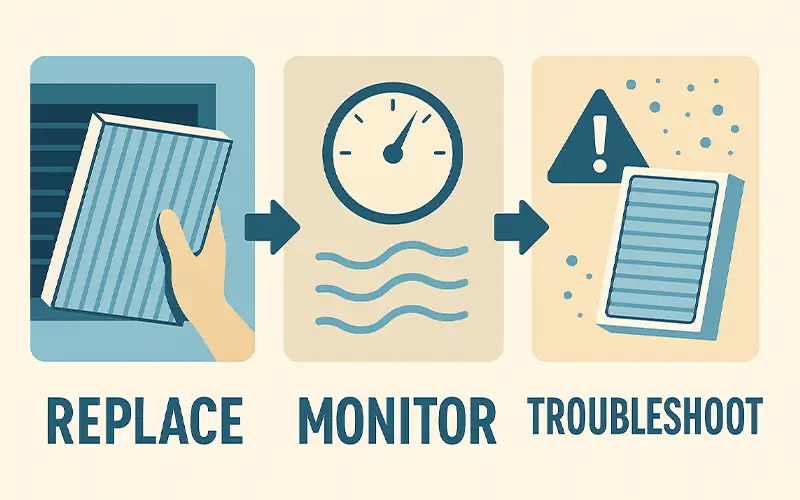 Air filter troubleshooting should begin with visual inspections—checking for gaps, sagging media, or uneven dust accumulation. If airflow problems persist, reviewing system compatibility and consulting manufacturer guidelines can help identify mismatches between filter type and HVAC design.